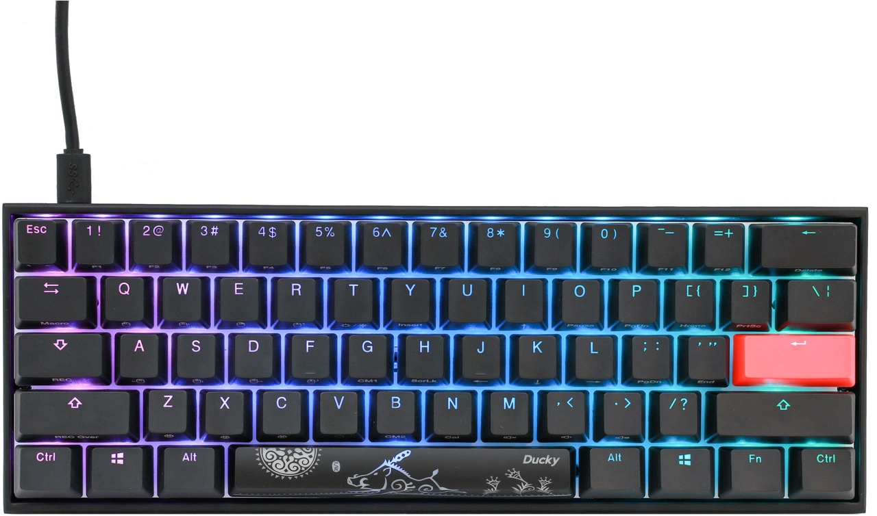 Supports Ducky Macro 2.0 and features software free dipswitches for fast, reliable control Includes either Year of the Pig or 1 of 2 Year of the Rat spacebars 10 additional PBT double – shot colorful keycaps (Random color) Stunningly beautiful and robust Cast Aluminum 60% frame Dual layer PCB with a wide array of RGB lighting modes PBT double shot seamless keycaps