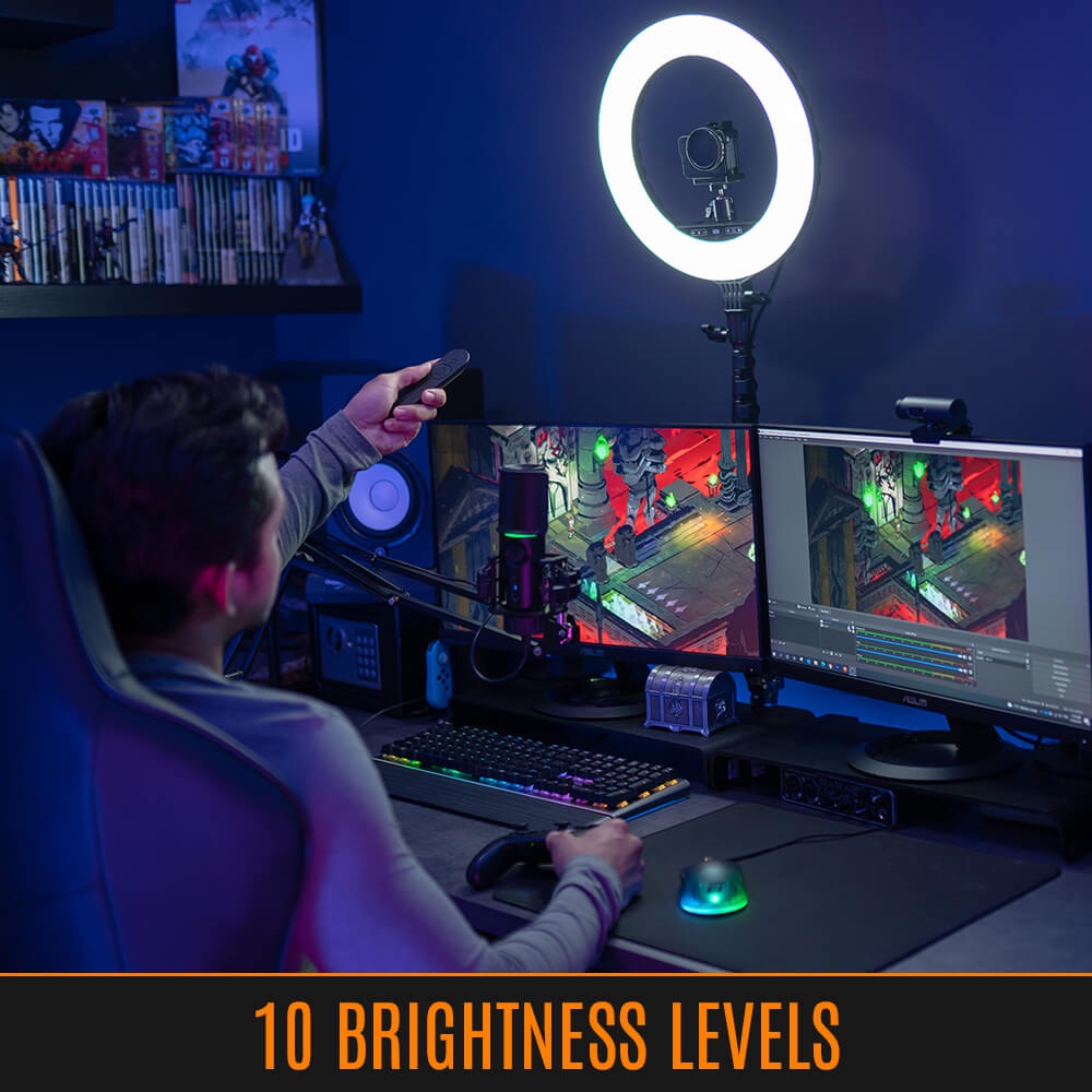Premium Ring Light delivers studio-grade lighting for your every need, making it perfect for streaming, vlogging, photography, video recording, and more. Adjust between 4 color temperature modes and 10 brightness levels to find the perfect look for you.