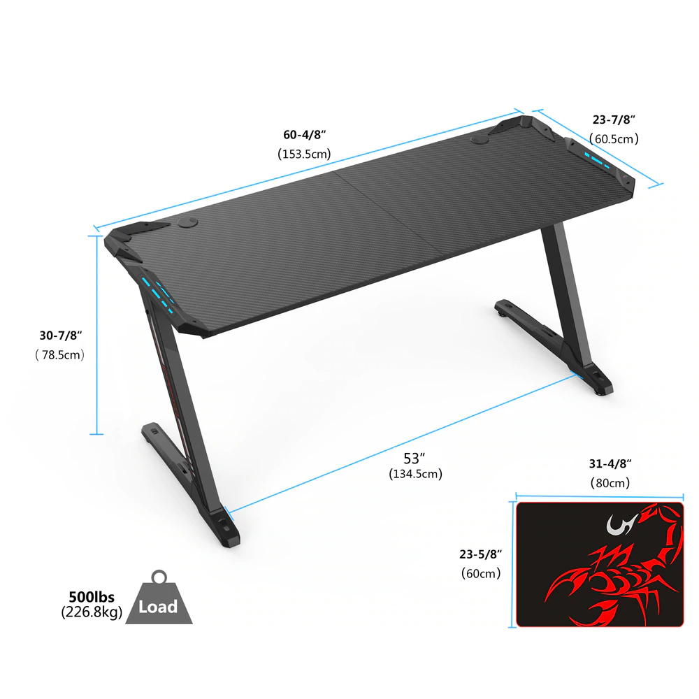 - Eureka Z60 Gaming Desk Table RGB Lighting Black, 153cm