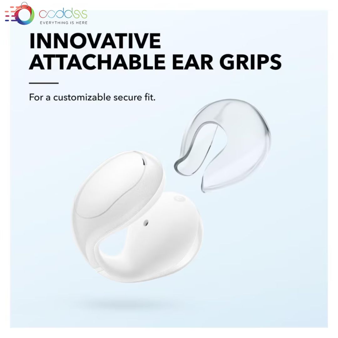 Soundcore by Anker C30i Open-Ear Clip Earbuds. Stable, secure fit. Lightweight comfort. Firm-shell design and attachable ear grips. Big drivers for clear audio. 30-hour playtime with case. IPX4 water-resistant. Multipoint connection