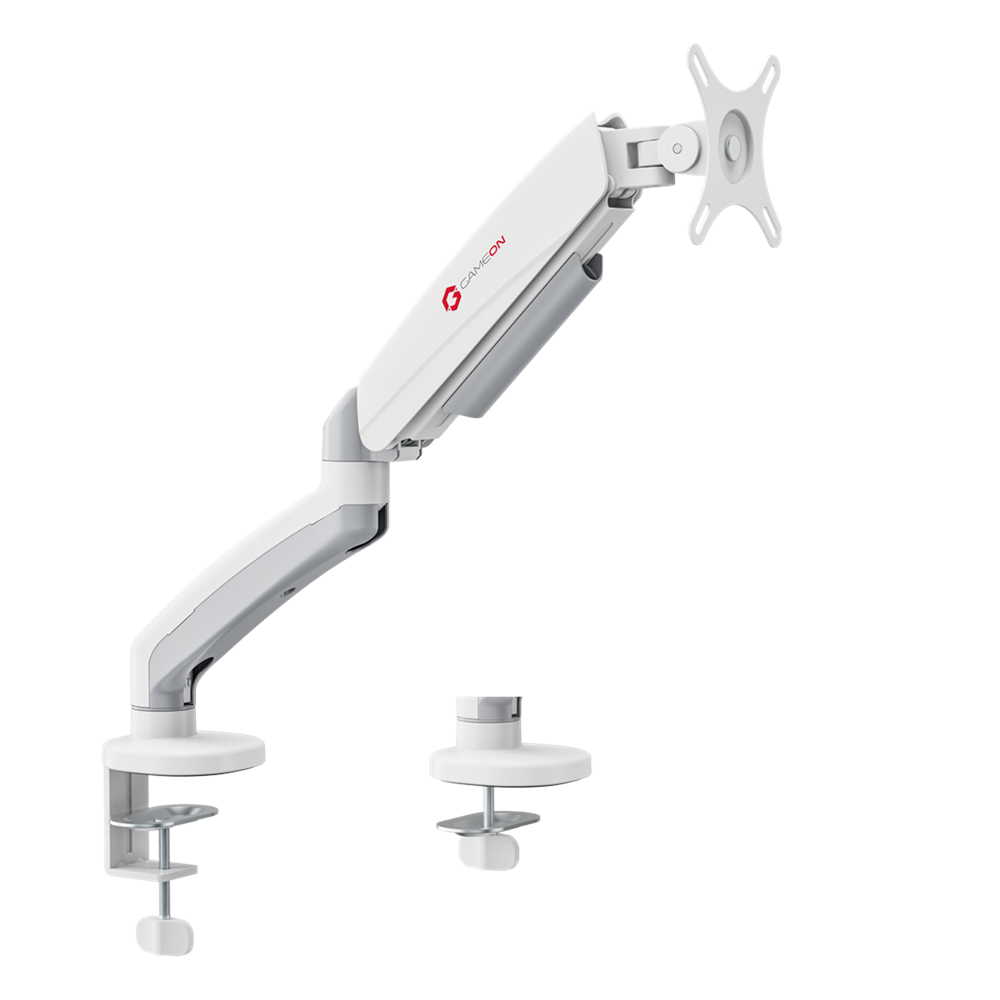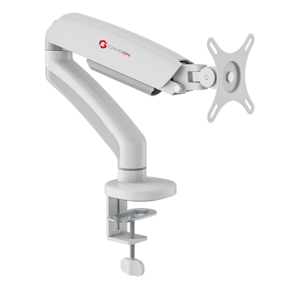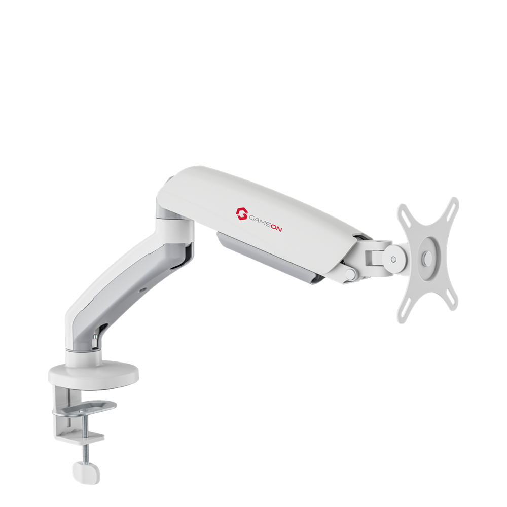 • GameOn GO5400 Single Monitor 17″ – 32″ Arm Desk Mount Table Stand Full Motion Flat, Curved, 2-9 KG – White