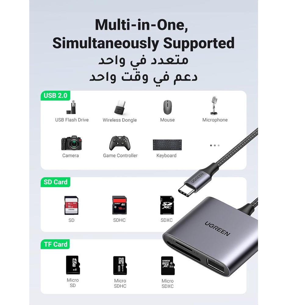 - UGreen CM387 USB-C to 3-in-1 Card Reader
