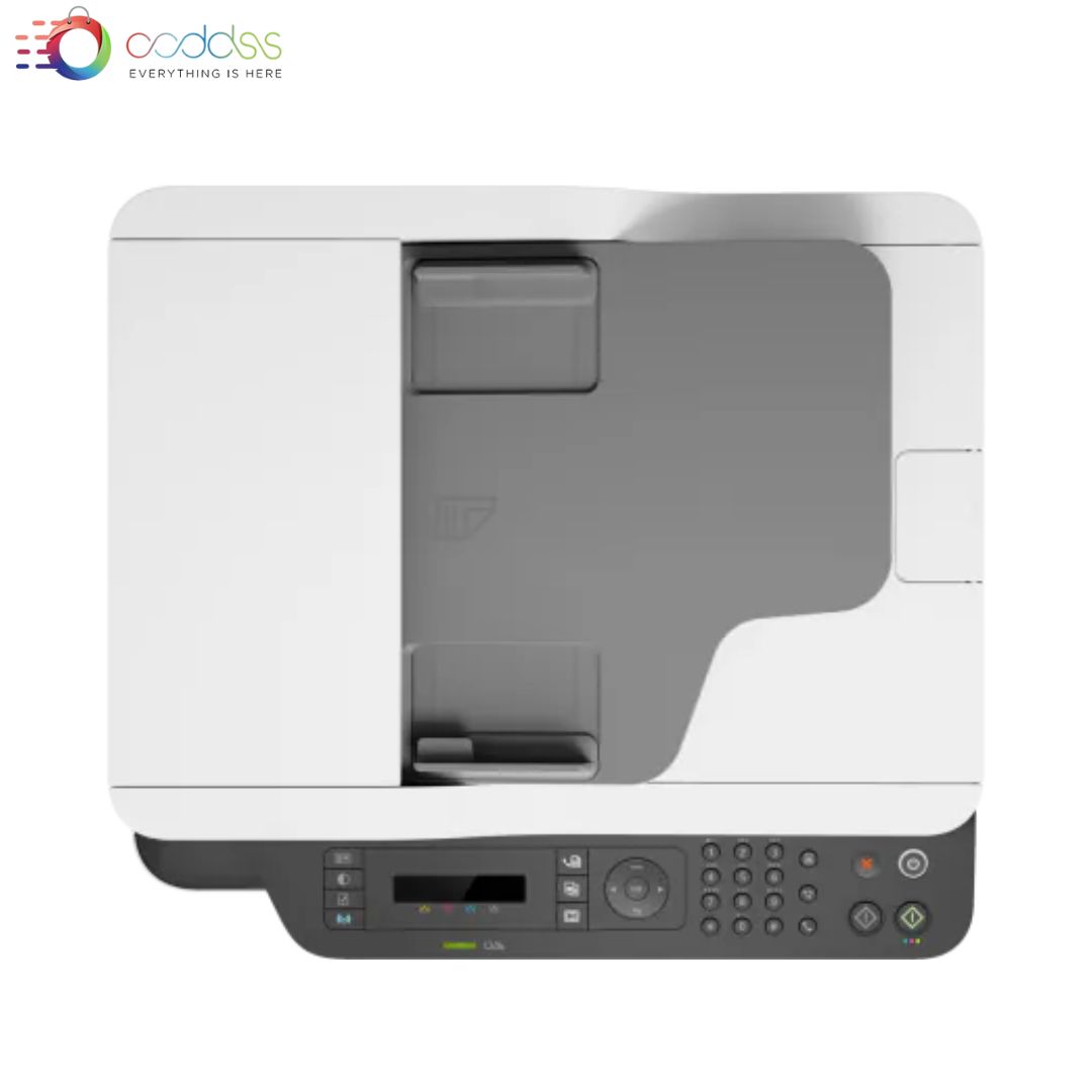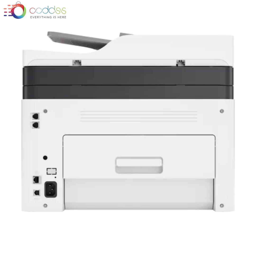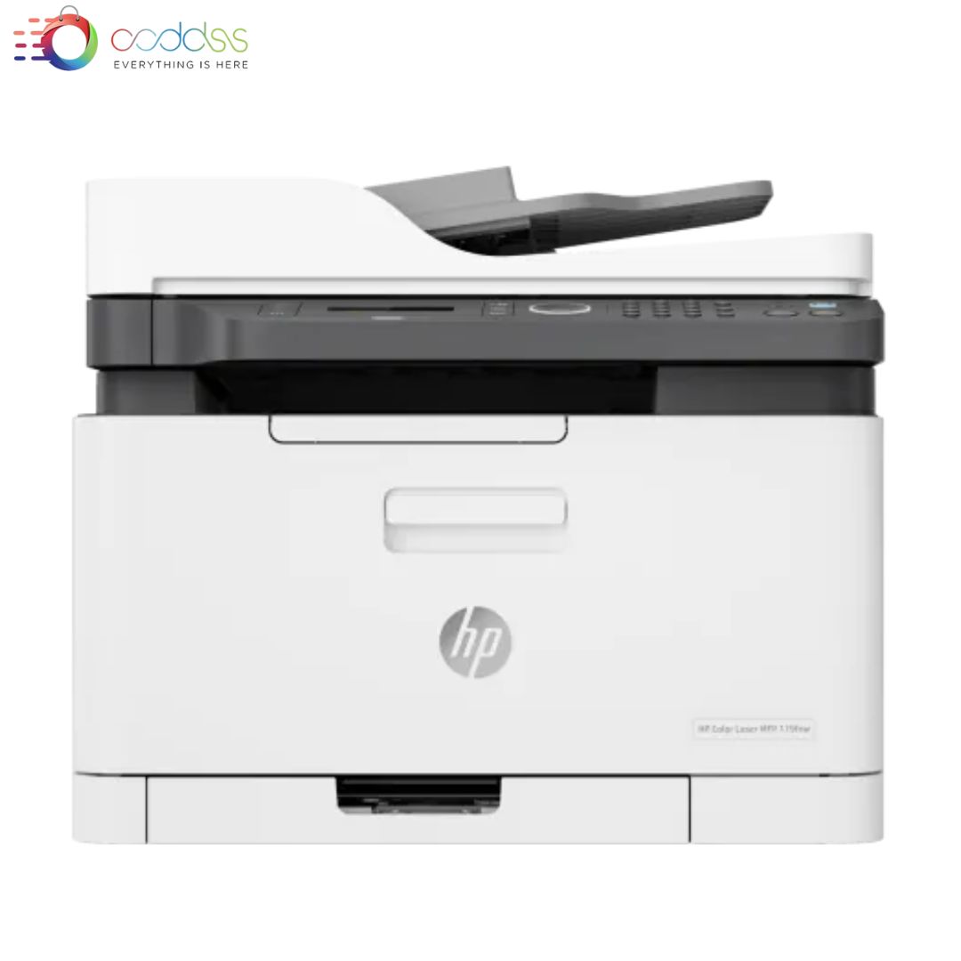 The HP Color Laser MFP 179fnw is a compact and efficient multifunction printer designed for small to medium-sized businesses. It offers printing, copying, scanning, and faxing capabilities with high-quality color output. The printer features a print speed of up to 19 pages per minute for black and white and up to 4 pages per minute for color. It supports dual-band Wi-Fi, Ethernet, and USB connectivity, and is compatible with mobile printing through the HP Smart App. The device includes a 150-sheet input tray and a 40-sheet automatic document feeder.