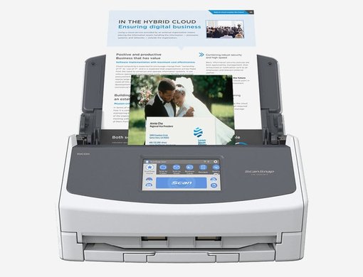 ScanSnap iX1600 is the evolved flagship model of the ScanSnap series, enabling scanning at higher speeds of 40 ppm/80 ipm (A4-size documents, color, 300dpi). It comes with the all-familiar 4.3-inch touch screen to bridge the gap where the physical and digital meets. The device comes with Wi-Fi connectivity, making it the perfect model for team sharing and combined use with cloud services.