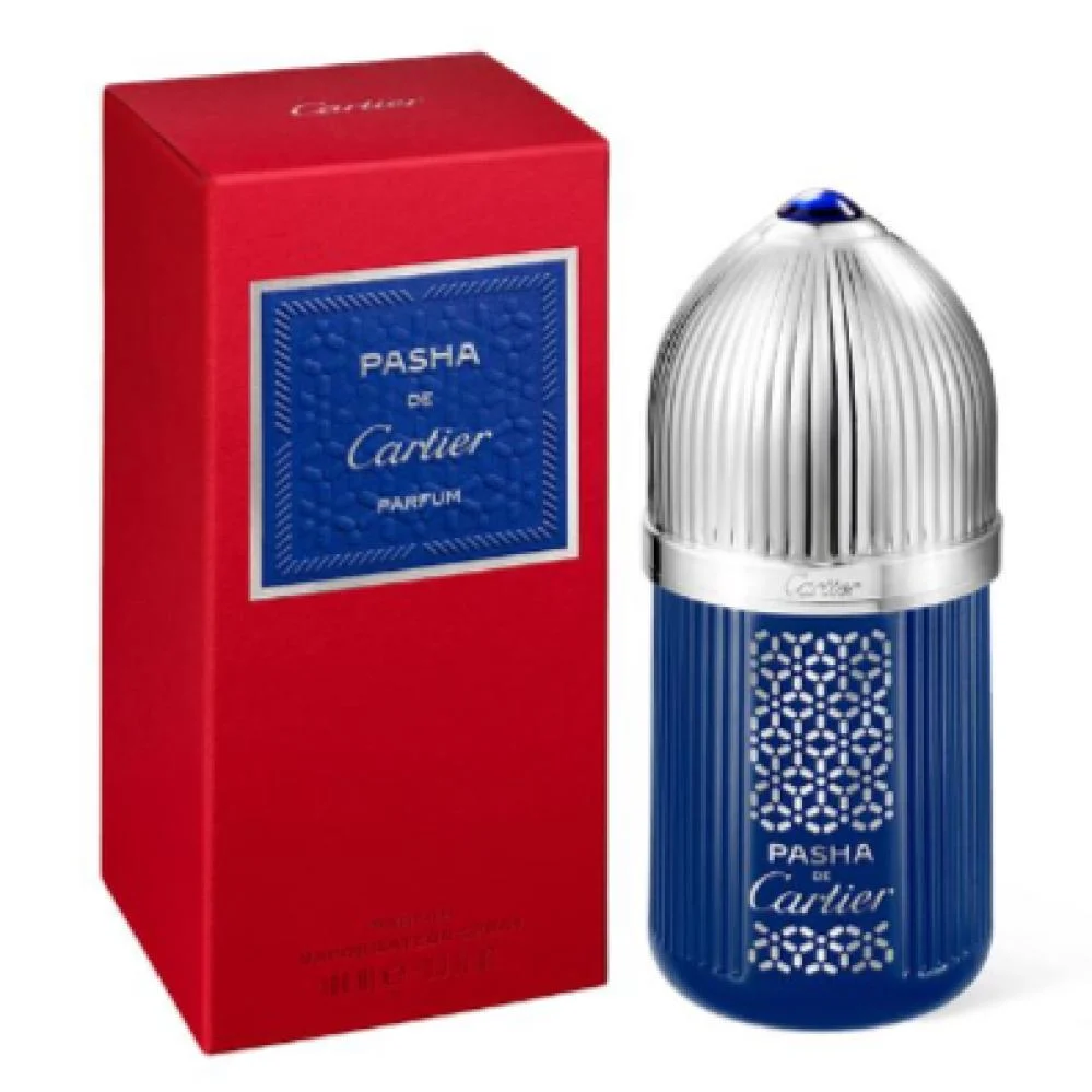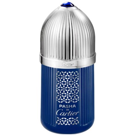 A new fragrance with a deep, intense character enhanced by the warmth of sandalwood. A bold and sensual amber scent. Pasha de Cartier Parfum is presented in a limited edition bottle whose deep blue color recalls the cabochon of Maison's iconic watch. Arabesque motifs taken from the Cartier archive play with light reflections in silver.