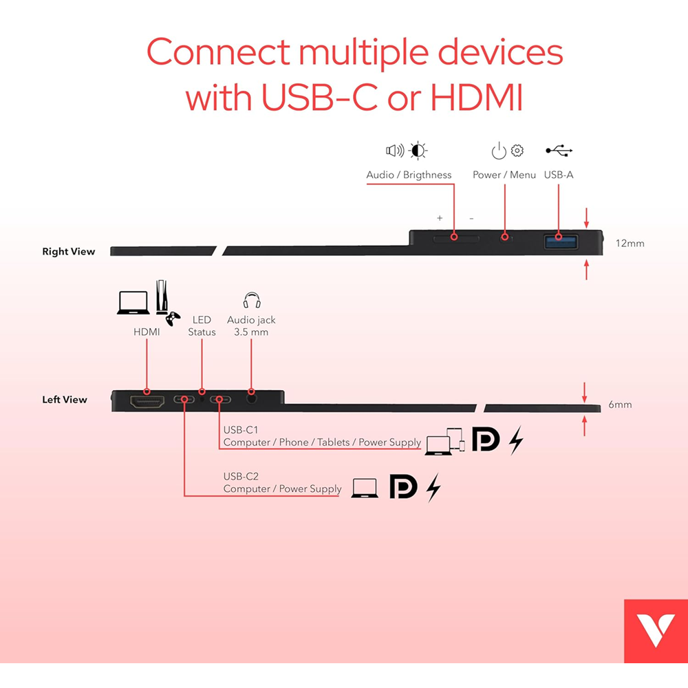 Verbatim 15.6″ FHD Portable IPS Touch Display Full Features Dual USB-C and HDMI Ports Smartphones, Laptops, Game consoles, Cameras, Tablets and more