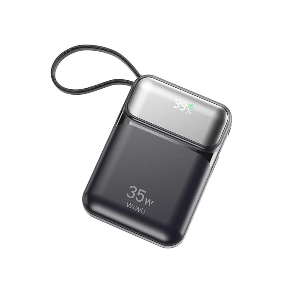WiWU Battery Capacity: 20,000mAh Battery Type: Li-Polymer Battery Equipped with dual line fast charging Charge up to 4 devices at once including laptop and iPad