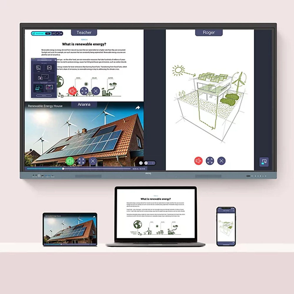 BenQ Anti-glare / Touch technology / DisplayPort HDMI (in | out) 3 × HDMI 2.0 | 1 × HDMI 2.0 USB-C 1 × 2.0 + 1 × 3.0 (PD 65 W) / VGA / LAN Wall mount / 2x Pen / 1x Remote control (Included) Dimensions (W x H x D) 1482.1 × 907 × 87.7 mm (58.4 × 35.7 × 3.5 inch)