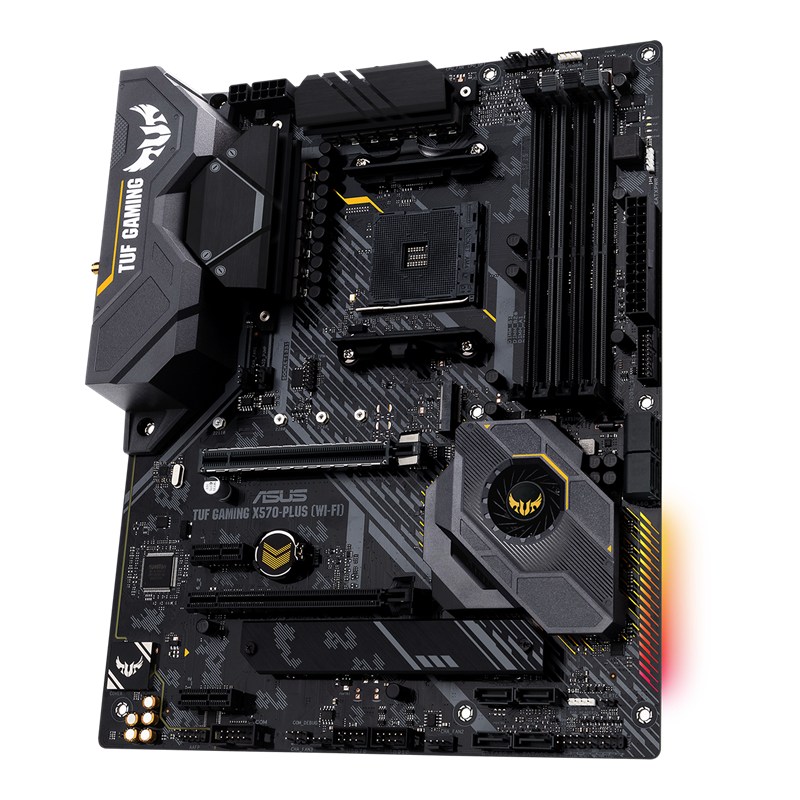 TUF Gaming X570-Plus (Wi-Fi) distills the essential elements of the latest AMD platform and combines them with game-ready features and proven durability. Engineered with military-grade components, upgraded power solutions and a comprehensive set of cooling options, these motherboards deliver rock-solid performance with unwavering gaming stability.