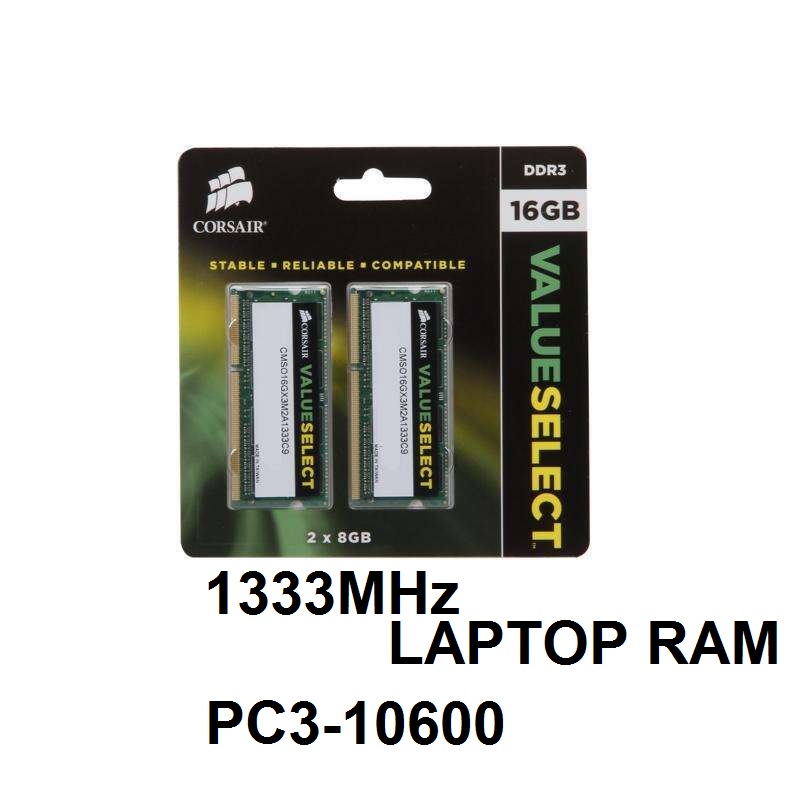 - Corsair 16GB RAM DDR3 1333MHz LAPTOP