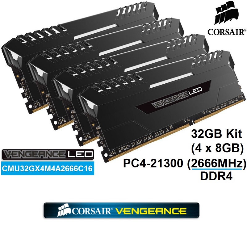 Corsair 32GB 2666MHz DDR4 RAM VENGEANCE LED (4 x 8GB) DRAM Memory Kit – White LED (CMU32GX4M4A2666C16)
