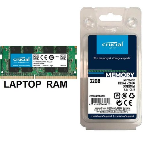 - Crucial 32GB 2666MHz DDR4 RAM LAPTOP, PC4-21300