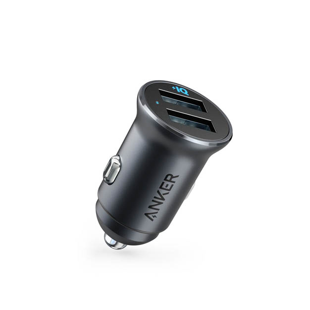 Anker Mini 24W 4.8A Car Charger_Dual USB Car Charger_ PowerDrive 2 Car Adapter With Blue LED Compatible with iPhone 11 / XR / Xs / Max / X / 8 / 7 / Plus, iPad Pro / Air 2 / Mini, Galaxy, LG, HTC